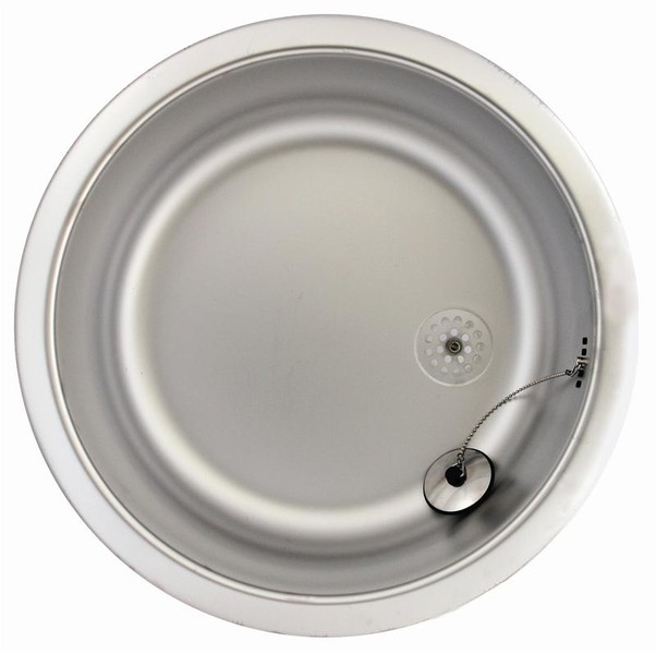 Varebeskrivelse: Enkelt kumme køkkenvask til nedfældning med prop Materiale tykkelse 0,8mm Til skabsstørrelse min. 50 cm Mat satin, rustfri stål Udvendig dimension Ø45cm Udskærings dimension Ø42cm Kumme størrelse Ø38x15cm