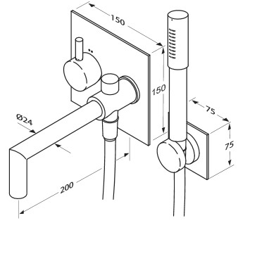Børma A6 indbygningsbatteri til kar/brus. Tilgang ½. Keramisk kartouche. Inklusive bruserTudlængde: 200 mm