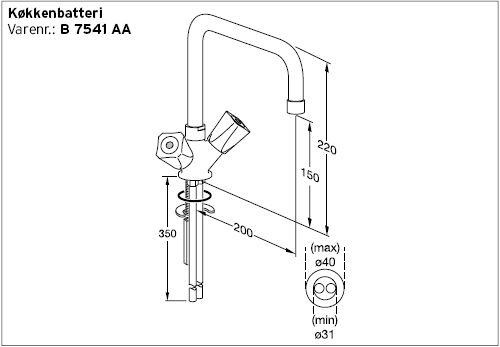 krom - 2-grebs - keramiske ventiloverdele - svingled med G3/4" omløber - 22 mm luftblander - 200 mm tudfremspring - tilgange: flexslanger G3/8"