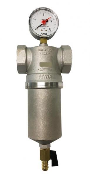 C.M.A Quick-clean vandfilter Selvrensende 3/4" Filterhus: TEA behandlet messing. Filterindsats: AISI 304 rf trådvæv Incl. manometer og taphane for udskylning. Anvendes som central-filter eller punkt-filter til filtrering af urenheder i vandet. Filterindsatsen er udskiftelig. Max. vandtemperatur 90° C. Max. arbejdstryk 10 bar. GDV godkendt.