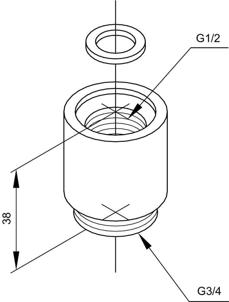 Damixa overgangsnippel til blandingsbatteri 1/2" indvendig - 3/4" udvendig  |