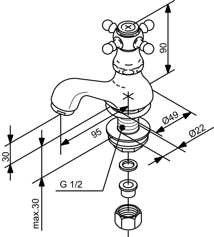 Damixa tradition servanteventil med krydsgreb - Krom