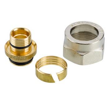 Klemringsfittings for tilslutning af Danfoss ventiler til PEX plastrør.