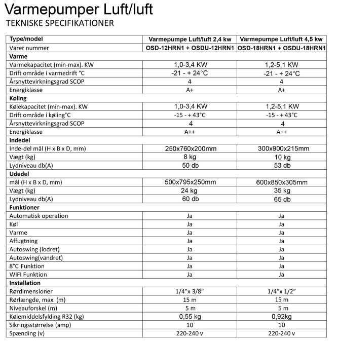 Langå varmepumpe luft til luft 5,1 kw med WiFi