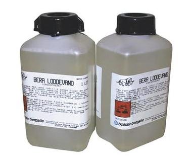 Loddevand BERA, koncentrerert anvendes til f.eks. Lodning af tagrender og tagplader i både kobber og zink.
