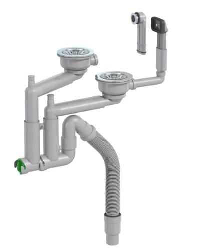 Prevex smartloc universal afløbssæt til dob. kumme stålvaske inkl. overløb, passer bla. til IKEA vaske