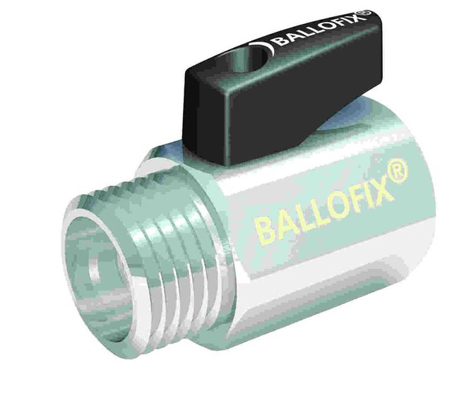 Kuglehane Ballofix ½. Med muffe og nippel. Anvendes ved tappesteder. Med håndtag.