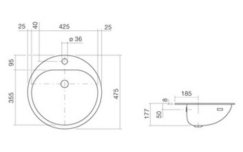 Alape EW3Ø47 håndvask t/nedfældning - Med overløb - 1 hanehul håndvask emalje Specifikationer: