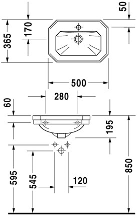 Duravit 1930 50 håndvask t/væg 1930 håndvasken fra Duravit har den kendetegnende ottekantede form, som er et smukt udgangspunkt for dig der ønsker vintage eller romantisk indretning på badeværelset.