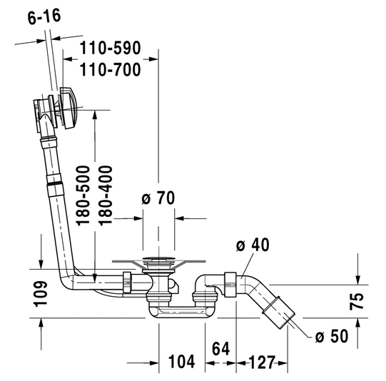 Duravit over- og afløbssæt - Krom Komplet af- og overløbssæt til Duravit D-Code badekar.