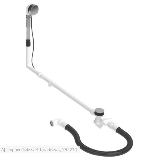 krom, til badekar med afløb i midten, med fleksibel afløbsslange, afløbshoved 52 mm, Kabellængde 1100 mm