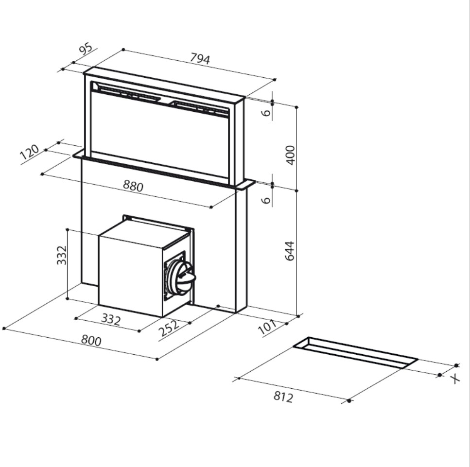 Eico Fabula N PLUS indbygget emhætte t/ bordplade - Rustfrit stål Eico Fabula N PLUS, Emfang for indbygning i bordplade med intern motor. Specifikationer: