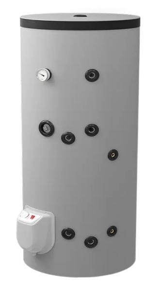 Solid beholder, med 1 spiral. Der kan tilsluttes pillefyr, varmepumpe, solvarme, fjernvarme eller en helt anden varmekilde til spiralen i bunden.