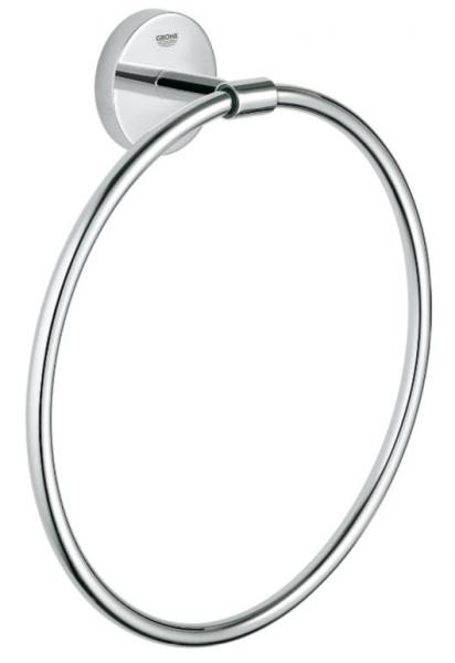 Grohe Bau Cosmopolitan håndklædering - Krom Grohe BauCosmopolitan – et moderne og tidløst design, der er perfekt til mange forskellige badeværelsesindretninger! Med en diameter på 180 mm og den slidstærke Grohe Long-Life Shine krombelægning kombinerer Grohe Essentials håndklæderingen minimalistisk elegance, førsteklasses kvalitet og design i et perfekt produkt. Kombiner den med andre produkter fra den smukke BauCosmopolitan kollektion, og skab et koordineret og harmonisk look i badeværelset. Specifikationer: