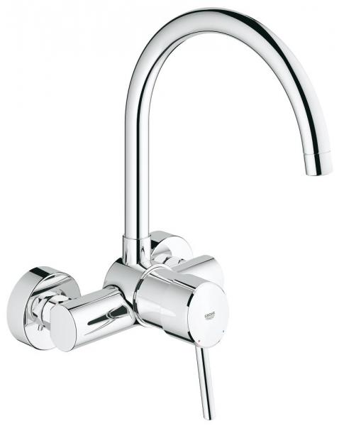 Grohe Concetto køkkenarmatur til montering på væggen. Dette vægmonterde køkkenvandhane har et klassisk, og dog moderne udtryk - den buede, høje tud kombineret med det enkle greb er et tidløst look, som vil holde sig aktuelt i mange år.