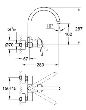 Grohe Concetto køkkenbatteri t/væg - Med svingtud