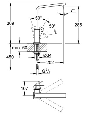 GROHE Eurocube køkkenarmatur: overlegen teknologi i et superflot design Med et rent design karakteriseret af lige linjer og firkantede former giver dette køkkenarmatur i GROHE Eurocube sortimentet dit køkken en markant profil. Fordi armaturet er belagt med den holdbare og blanke GROHE StarLight® krombelægning, vil det altid se pletfrit og nyt ud. Den høje tud, der både er visuelt tiltrækkende og praktisk, gør det muligt for dig at fylde eller rengøre høje gryder uden det mindste besvær. Svingfeltet på 360° giver optimal fleksibilitet. Den integrerede GROHE SilkMove® teknologi sikrer en jævn og ubesværet styring af vandtemperaturen og -mængden. Takket være vores brugervenlige installationssystem kan du nemt og hurtigt installere dette blandingsbatteri til køkkenvask. Nyd et kubisk look, der er perfekt hele vejen rundt.