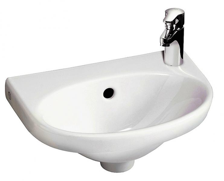 Gustavsberg Nautic 5540 40 håndvask t/væg - Højre Denne lille, charmerende håndvask fra Gustavsberg er oplagt til det lille badeværelse, gæstetoilettet eller københavnerbadeværelset. Specifikationer: