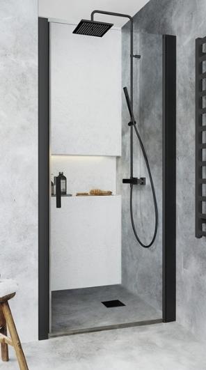 Lige brusedør i klart glas med profil i sort mat eller aluminium, der er tilpasset til nicheåbning og monteres mellem faste vægge. Brusedøren er stabil med vægprofil og profil til magnetlisten. Vægprofilerne kan monteres med skruer eller limbrikker. Brusedøren har en patenteret løsning til nem installation og justering, Hafas InstaQuick™. Brusedøren har et løftehængsel, så den ikke rører gulvet ved åbning og er vendbar, så du kan vælge mellem at montere den på højre eller venstre side. 6 mm hærdet sikkerhedsglas. Højde 2000 mm. Kan monteres med påbygningsrør, 35 mm. Til nogle bredder medfølger ekstra forlængerprofil. Se målskitse. Gulvliste 18mm og håndtag medfølger.