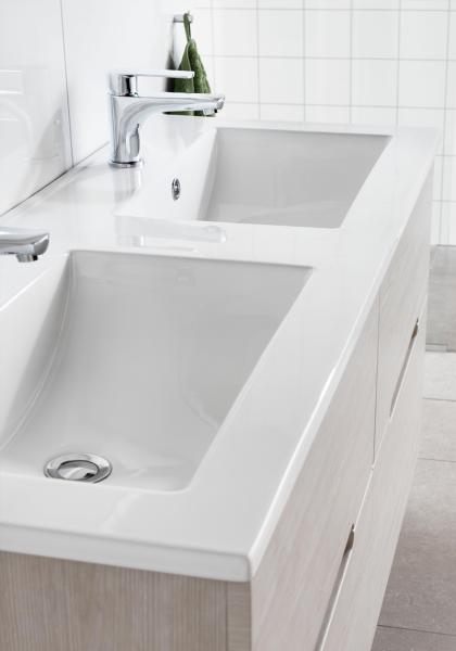 Kompakt håndvask i porcelæn med overfyldningsbeskyttelse Med bundventil Denne vask passer til Go-, Sun-, East-, og Eden-serien.  |