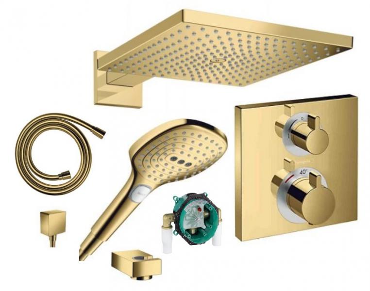 Hansgrohe Ecostat Square komplet brusesystem til indbygning - Poleret guld-optik