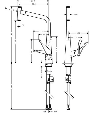 Produktkendetegn: Enkel betjening og større bevægelsesfrihed. Det nye køkkenarmatur hansgrohe Metris Select kombinerer for første gang en udtrækstud med den innovative Select-teknologi. Uanset om du skal skylle en gryde, fylde en vase, der står ved siden af vasken, eller vande planter, er udtrækstuden med integreret Select-knap en stor hjælp. Takket være denne smarte teknologi kan du nemlig bevæge dig længere væk fra køkkenvasken og stadig betjene armaturet. Som på almindelige køkkenarmaturer indstilles vandmængde og temperatur med grebet på siden, der på grund af sin ergonomiske form er behageligt at betjene. Herefter kan man blot åbne og lukke for vandet ved at trykke på Select-knappen. Select-knappen fungerer rent mekanisk, så den øgede komfort kræver ingen elektricitet eller ekstra udstyr under vasken.