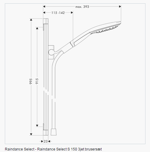 Hansgrohe Raindance Select S 150 brusersæt - 3 spray/Krom