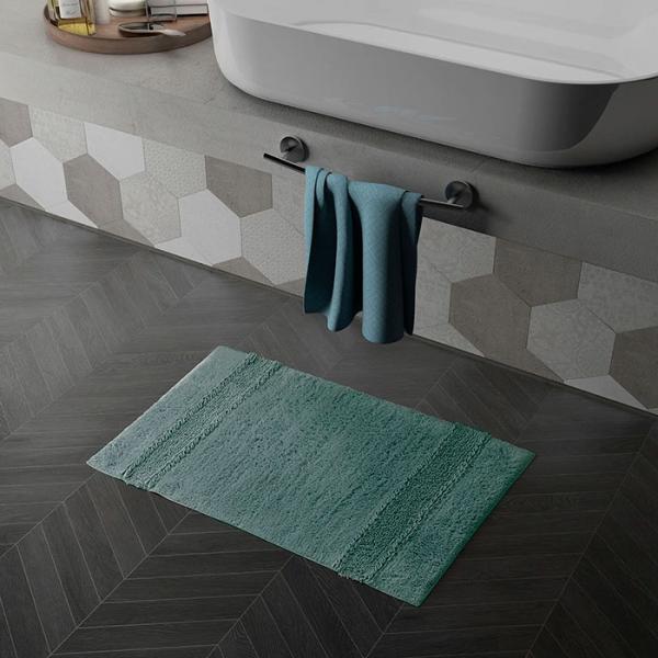 Hefe Miss bademåtte 50 x 80cm - Grøn Miss er en skridsikker bademåtte i bomuld med charmerende dekorationsborter, der giver struktur til den plyssede overflade. Med en bademåtte i bomuld får dine fødder det perfekte, bløde sted at lande efter et varmt bad. Den skridsikre bagside sører for at både du og måtte ikke glider på våde og glatte gulve. Vælg mellem 3 farver, som vil bringe atmosfære og varme ind på badeværelset. Specifikationer: