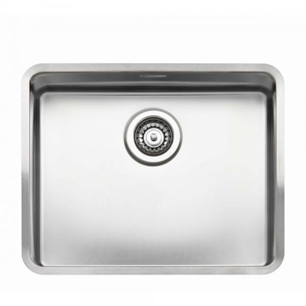 Rustfri stålvask, uden hanehul, i moderne design. De indvendige runde hjørner følger vaskens yderkant, hvilket giver et harmonisk design, ligeledes er de indvendige runde hjørner rengøringsvenlige. (R: bund: 15 og hjørner: 25 mm)