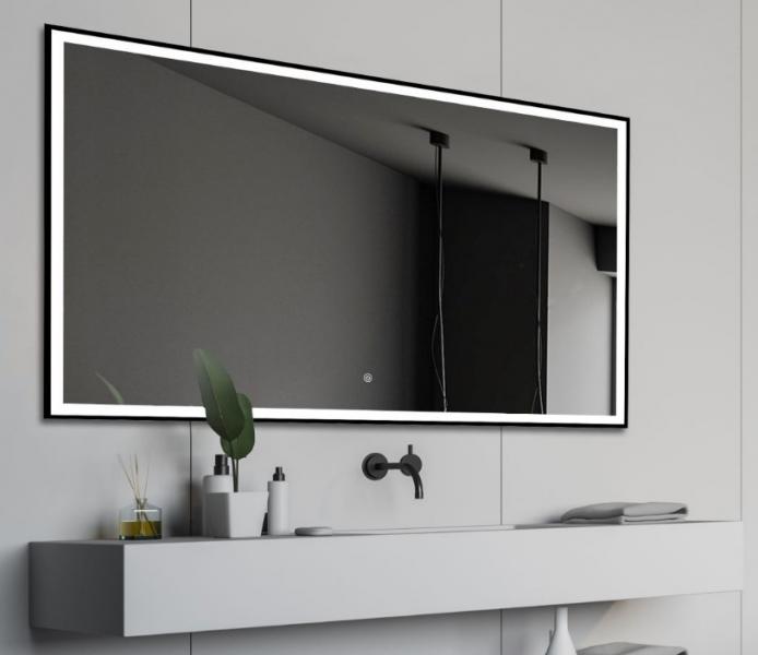 Fie firkantet spejl m/sort ramme, integreret LED lys og touch - 160 cm