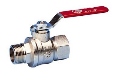 Kraftig kuglehane med fuldt gennemløb. TEA overfladebehandling. Muffe/nippel. Rødt stålhåndtag.