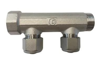 TEA belagt fordelerrør til vand- og varmesystemer incl 15 mm koblingssæt, cc50, messing 2 afgange