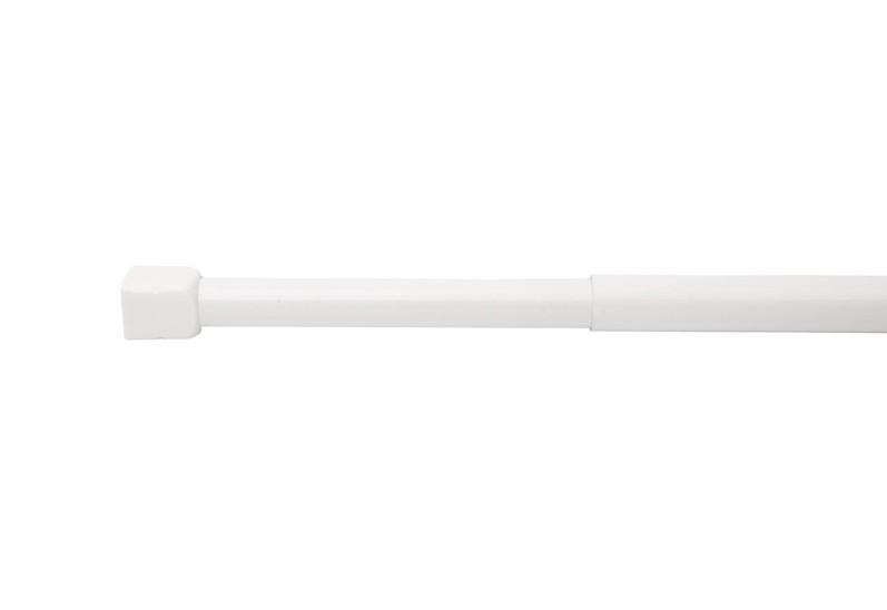Ridder Eco Teleskopstang - Krom - 110-185 cm Denne teleskopstang bruges på badeværelset til ophæng af badeforhæng. Stangen er produceret i aluminium i en kromfarvet finish med hvide ender af plastik. Teleskopstangen er fleksibel, da den er justerbar i længden, så den passer til dit badeværelse. Desuden kan den nemt beskæres efter ønske. Teleskopstangen er nem at montere, da den blot fastspændes mellem væggene uden boring.