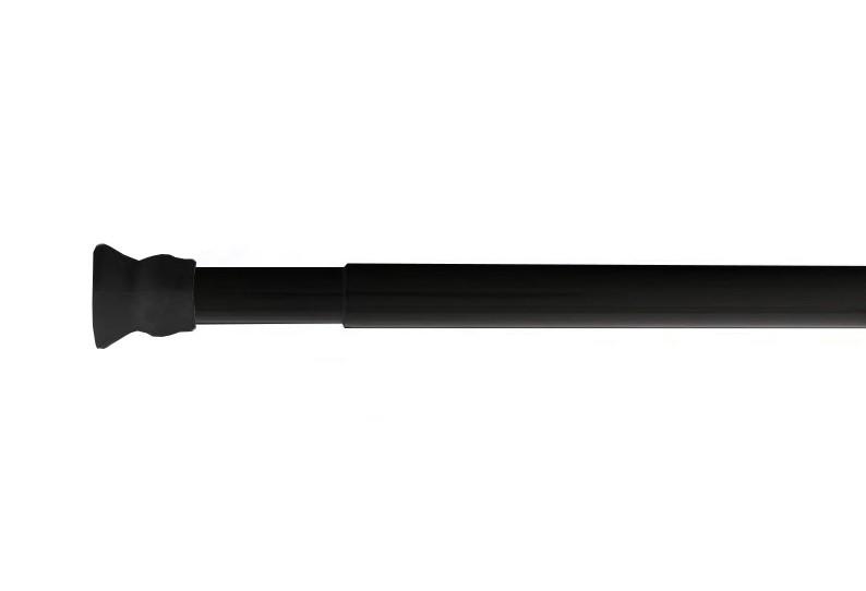 Ridder Teleskopstang - Mat sort - 110-185 cm Denne teleskopstang bruges på badeværelset til ophæng af badeforhæng. Stangen er produceret i aluminium i en kromfarvet finish med hvide ender af plastik. Vægbeslagene for enden af teleskopsstangen er udstyret med en anti-slip funktion. Teleskopstangen er fleksibel, da den er justerbar i længden, så den passer til dit badeværelse. Desuden kan den nemt beskæres efter ønske. Teleskopstangen er nem at montere, da den blot fastspændes mellem væggene uden boring.