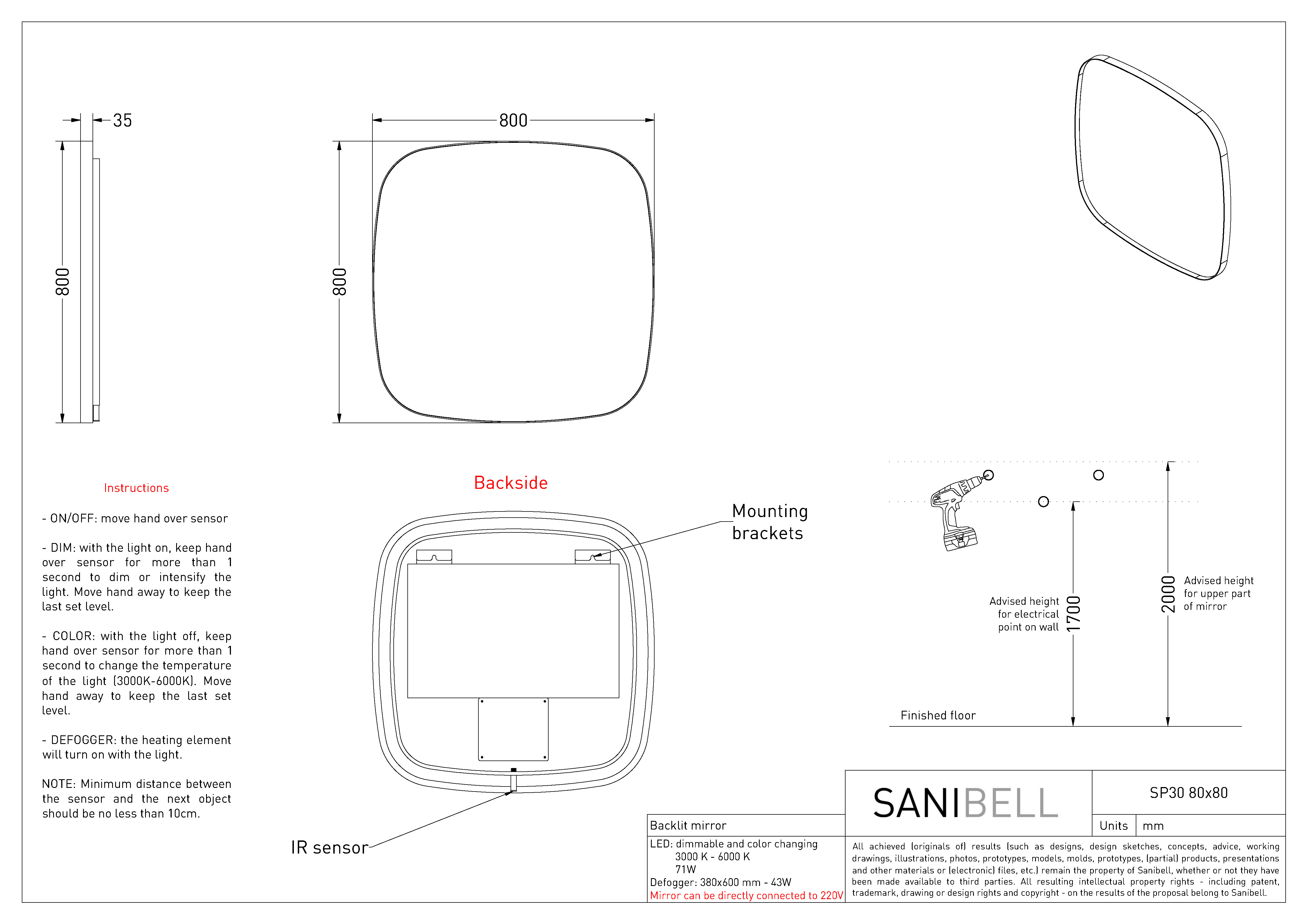 Udover backlight har spejlet også indbygget varmefelt, hvilket betyder at du kan nyde den luksuriøse oplevelse af et dugfrit spejl - selvom om du lige har taget et langt varmt bad.