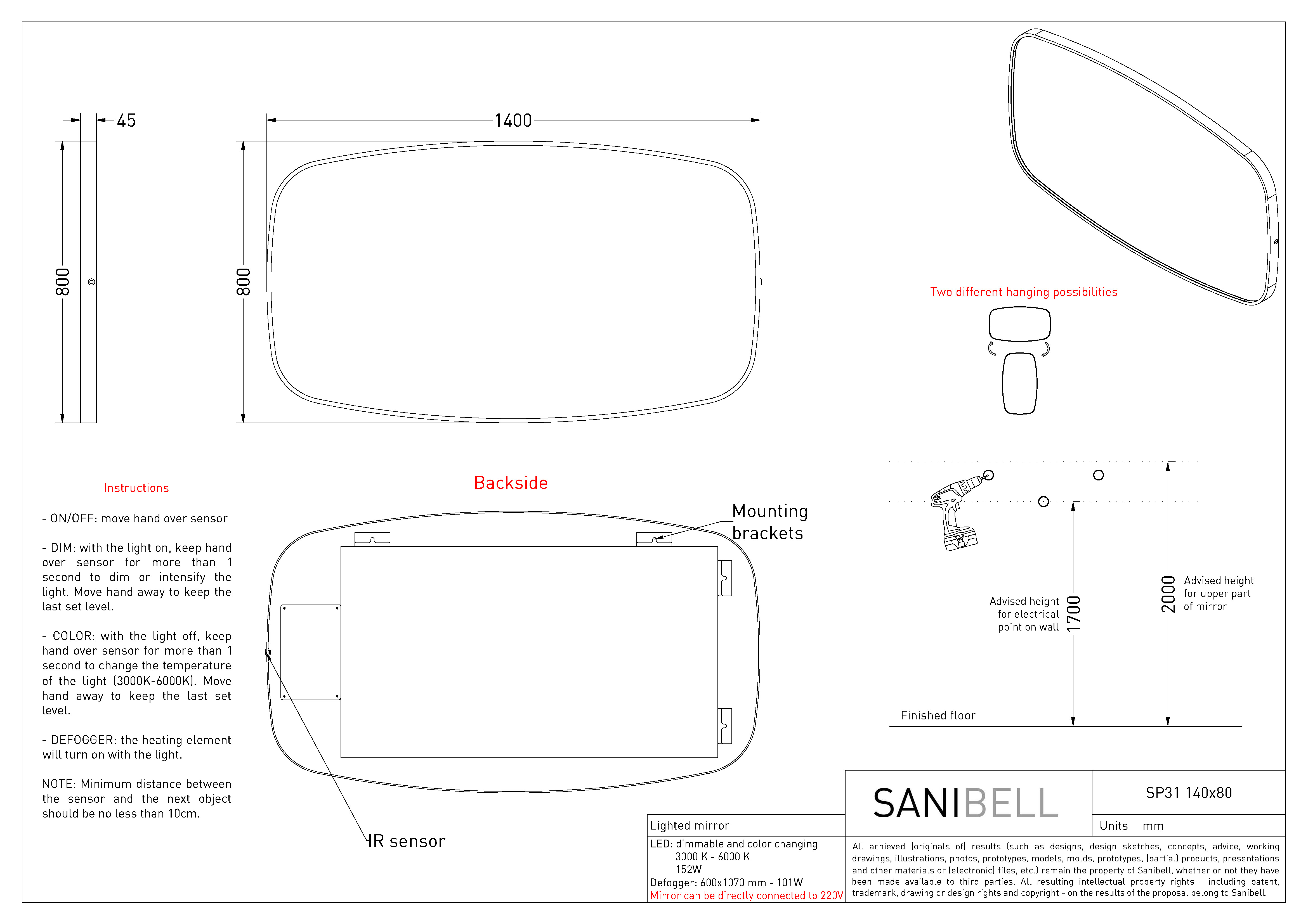 Sanibell Ink SP31 spejl m/lys, varme og sensor 140 x 80 cm - Børstet mat guld Superellipse-formet spejl fra Sanibell Ink med indbygget lys i rammen. Det eksklusive spejl har desuden indbygget memory funktion, så det husker forrige indstilling. Juster både lysets farve og styrke ved hjælp af den smarte touch-free sensorkontakt. Når du vælger dette spejl, kan du uden problemer bruge dit spejl, selv efter et langt, varmt bad, for spejlet har indbygget varme og er derfor dugfrit. Det rektangulære spejl kan vendes, og dermed monteres både lodret og vandret. Spejlet leveres i 6 flotte farver, så du kan fuldende indretningen på badeværelset med et spejl, der matcher både vandhane og badtilbehør. Specifikationer: