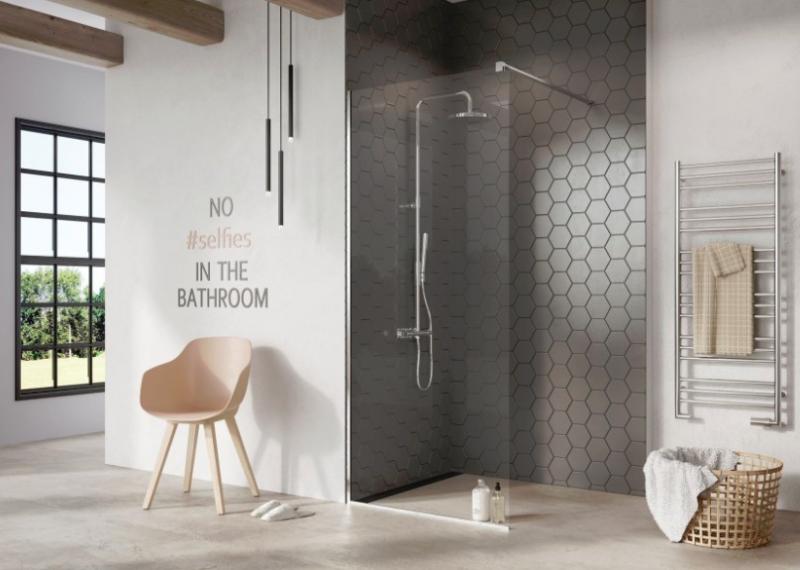 Strømberg Font Walk-in bruseafskærmning 700mm fast væg m/100cm stang, klart glas