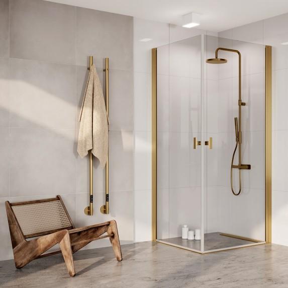 Strømberg Noma 120 bruseniche - 90x90 cm - Klar glas/børstet messing