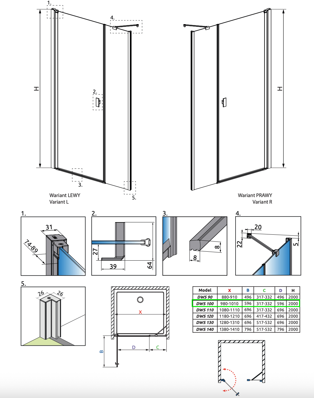 Strømberg Noma 45 svingdør m/sidepanel 1000mm - Højre - Krom Brusenichedør med fast sidepanel - begge med paneler og greb på døren i krom. Specifikationer:
