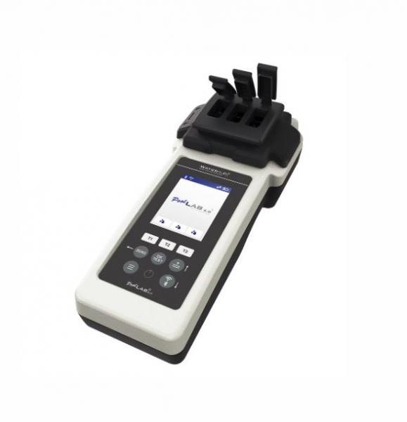 Pool Lab 2.0 er til digital måling af 24 parametre, og den tredobbelte målekuvette tillader hurtig prøvetagning ved blot at dyppe den i vandet.
