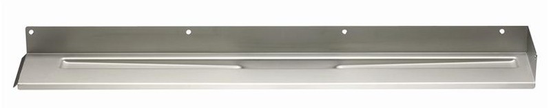 Afløbsarmaturet har to vægflanger og to gulvflanger, og er formgivet ud af et stykke kraftigt 1,5 mm rustfrit stål med bejdset overfladefinish.