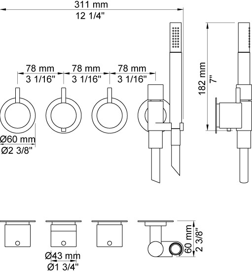 Vola 5471R-16 Brusetermostat med omskifter og håndbruser