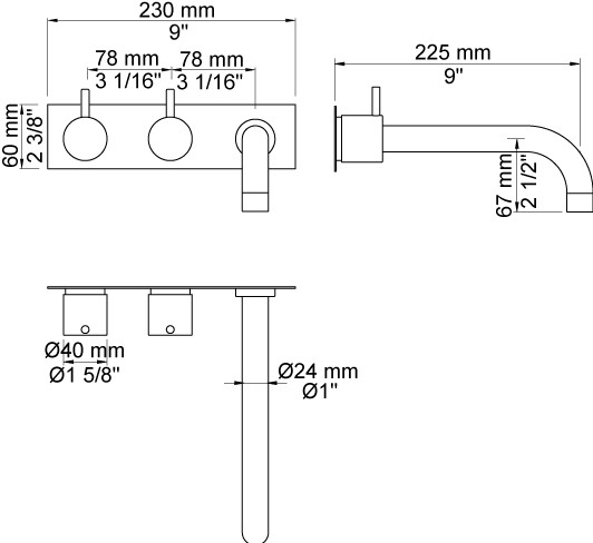 To-grebsblander med keramiske ventiler 600, 2 greb NR17, 225 mm fast tud 020 med vandbesparende luftindblander, Tre-hulsplade 60 X 230mm 003K.