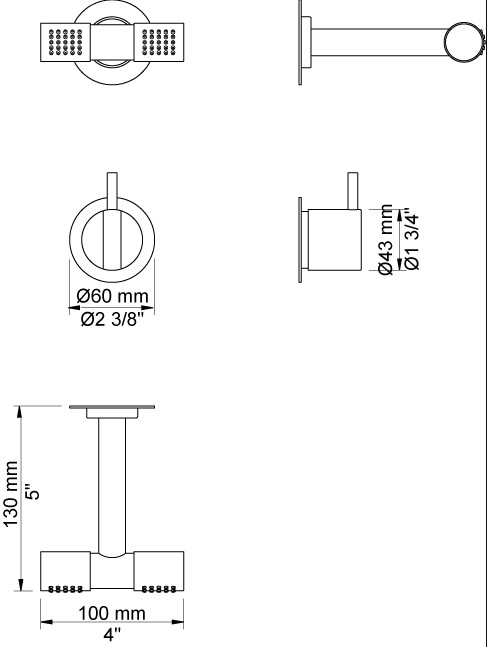 Vola Et-grebsblander for stor vandmængde med keramisk ventilenhed og løs afgangsmuffe Dobbelt hovedbruser, 115 mm Rosetter Børstet krom 20 ½''RG/PEX
