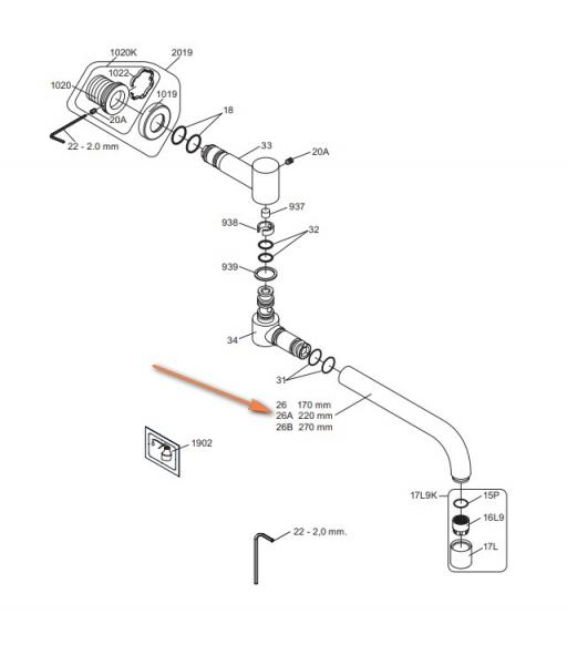 Vola Fortud til 030, 220 mm Krom 16