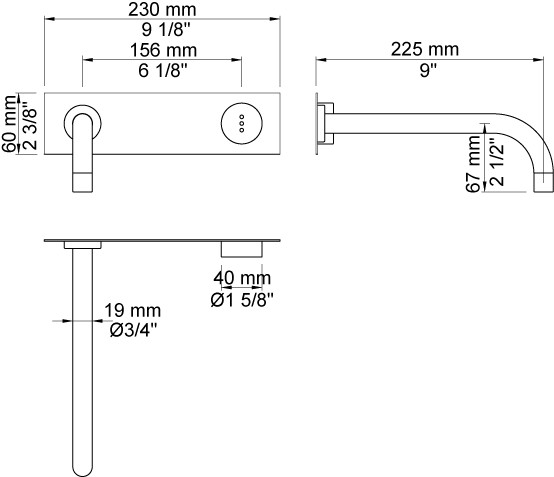 Vola Indbygningsventil til en slags vand, til berøringsfri betjening Fast udløb, 225 mm, ø19 mm Dækplade Krom 16 ½''RG  |