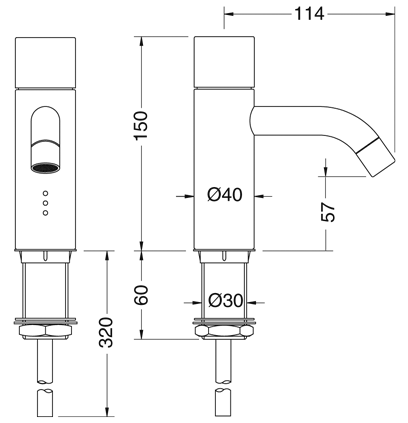 Vola Elektronisk ventil til en slags vand med fast tud, Batteri Krom 16 SPX/240V  |