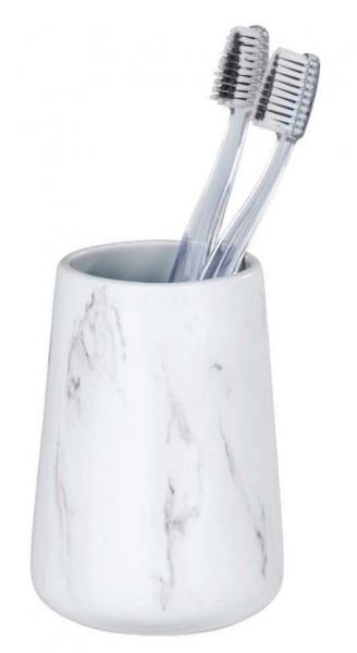 Wenko Adrada tandkrus - Marmor keramik Det stilfulde Adrada tandbørstekrus udgør en attraktiv opbevaringsplads for tandbørster og tandpasta på badeværelset. Krusset er dekorativ i det flotte marmordesign, som giver hvert badeværelse en særlig atmosfære. Det er fremstillet af højkvalitets keramik, der sikrer mange års brug grundet den gode kvalitet. Tandbørstekrusset har en simpel form med bløde former og afrundede kanter. I Adrada-serien findes også matchende sæbedispenser, sæbeskål og toiletsæt.