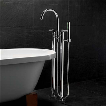 Westerbergs Surf badekarbatteri. Et badekarbatteri med rene linjer som står på gulvet i stedet for at være monteret på væggen. Passer godt til Westerbergs mere moderne fritstående badekar. |