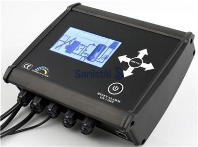 Woody styring 7 med trykknapper for Woody pillebrændere. Fra styringen kan alle reguleringer og programmeringer foretages. Yderligere kan du i styringen vælge mellem forskellige for konfigurerede anlægstyper som visuelt kan ses på skærmen med aktuelle driftstilstande.